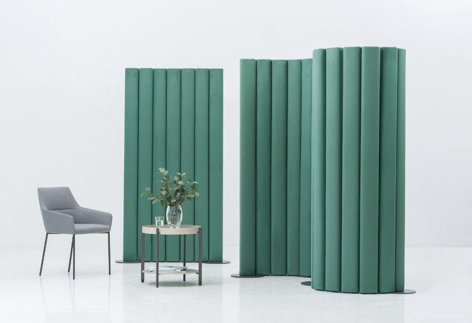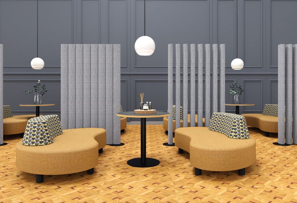 Upholstered modules made of recycled foam based on metal profiles.