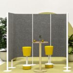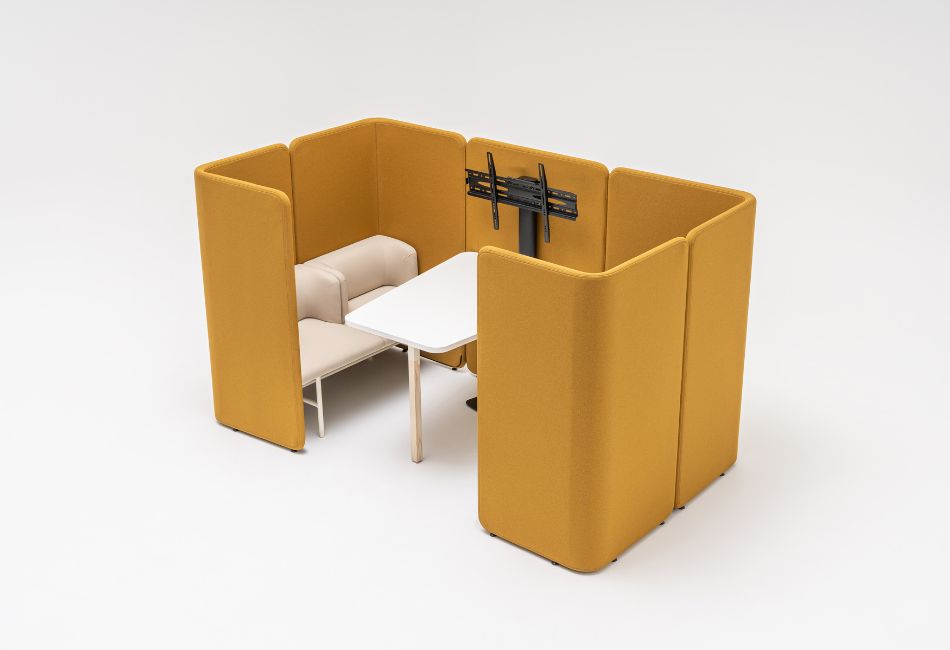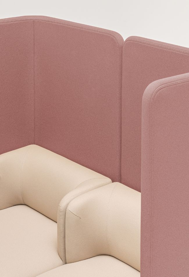 High panels that delimit the space, upholstered with noise-blocking materials.