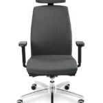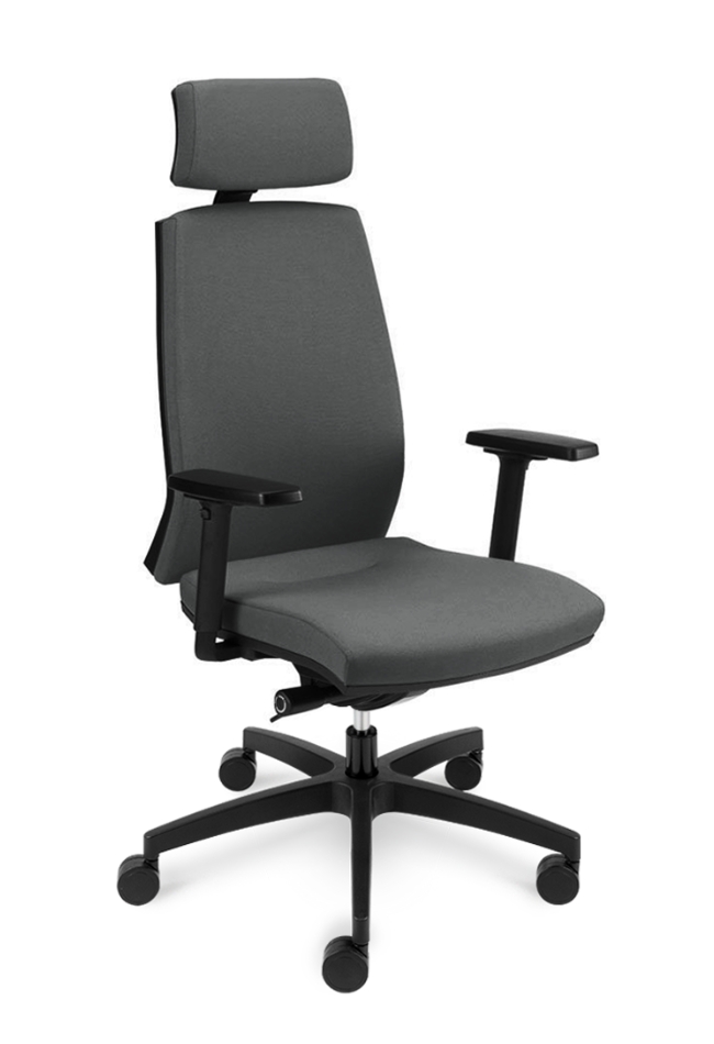 Base made of black nylon Ø 700 mm. Provided with timing mechanism.Seat tilt 13°, backrest tilt 22°, locking in 4 positions. Seat height adjustment.Upholstered seat and back. Height adjustable armrest in black nylon. Available with upholstered headrest. 65mm wheels.