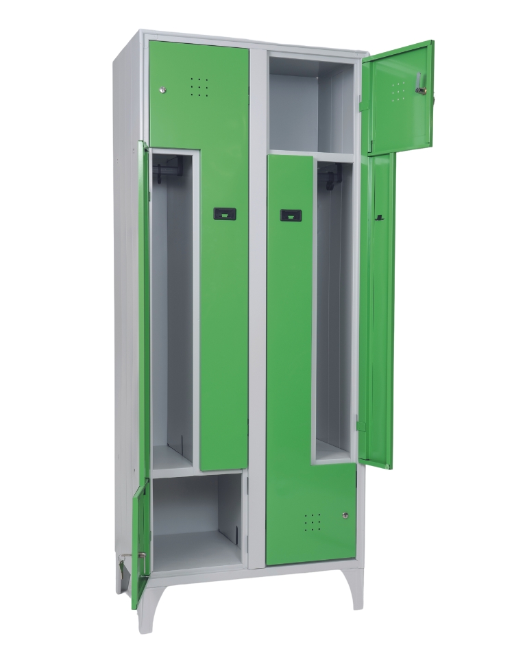 The changing rooms are made of quality I steel sheet, welded structure, resistant, with technical bends that provide a stiffening 40% higher than traditional changing rooms.