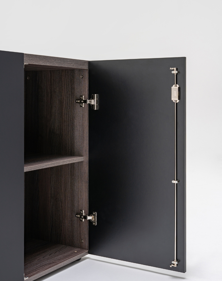 Made of 18mm and 28mm thick melamine board, ABS edging.