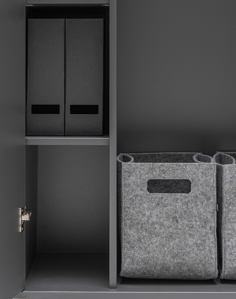 Made of 18mm and 28mm thick melamine board, ABS edging.