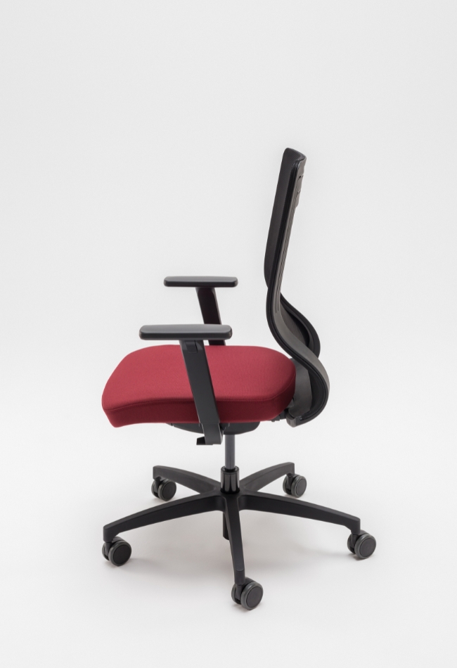 The seat is made of foam with a density of 66kg/m3, upholstered in different colors. Mesh back.