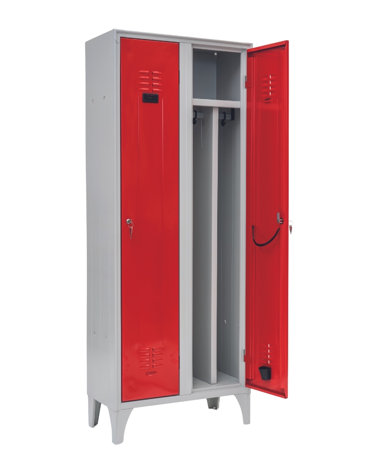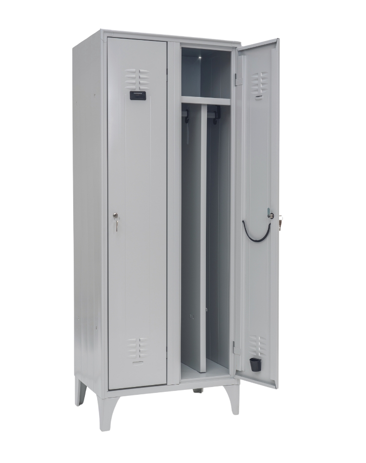 Vestiarele sunt realizate din tablă de oțel de calitatea I, structură sudată, rezistentă, cu îndoituri tehnice care oferă o rigidizare cu 40% mai mare decât a vestiarelor tradiționale.