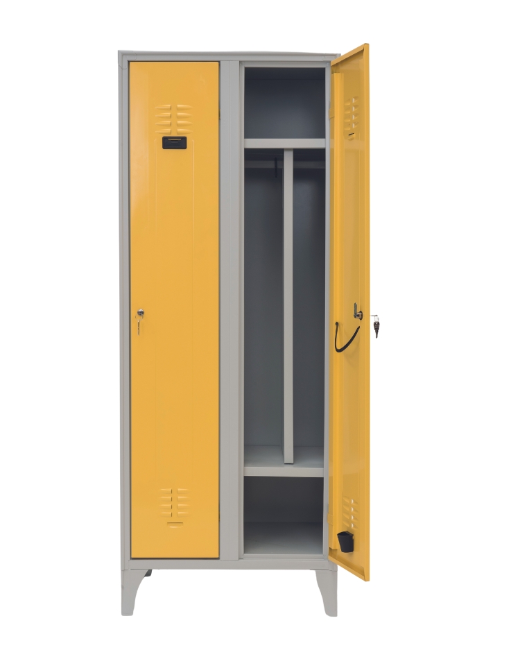 Vestiarele sunt realizate din tablă de oțel de calitatea I, structură sudată, rezistentă, cu îndoituri tehnice care oferă o rigidizare cu 40% mai mare decât a vestiarelor tradiționale.
