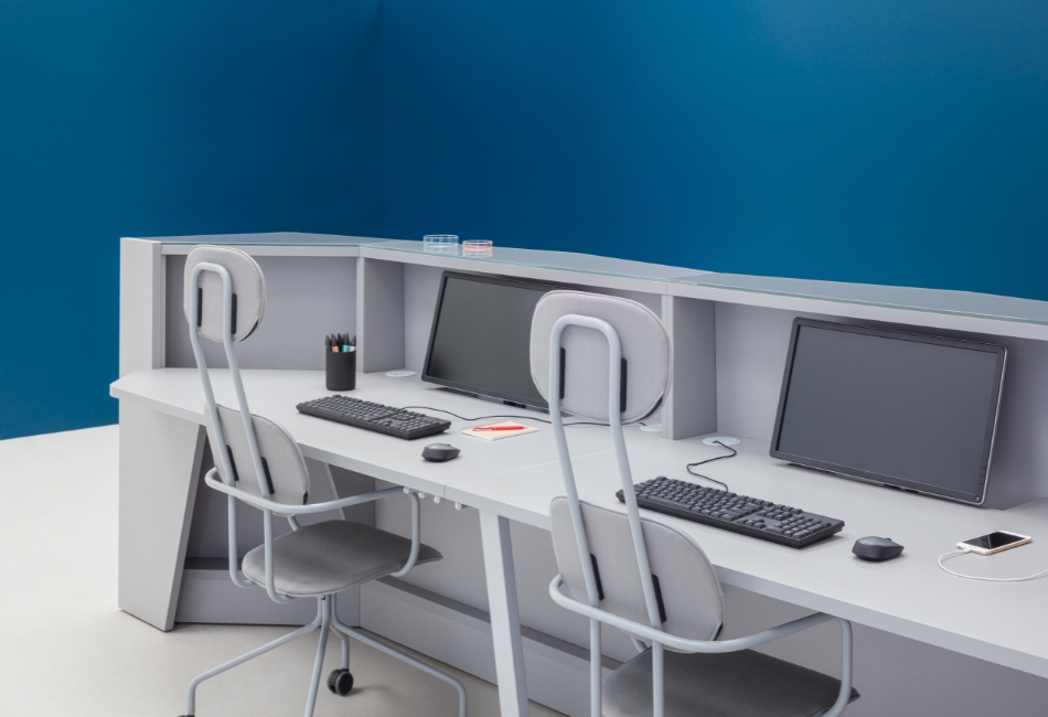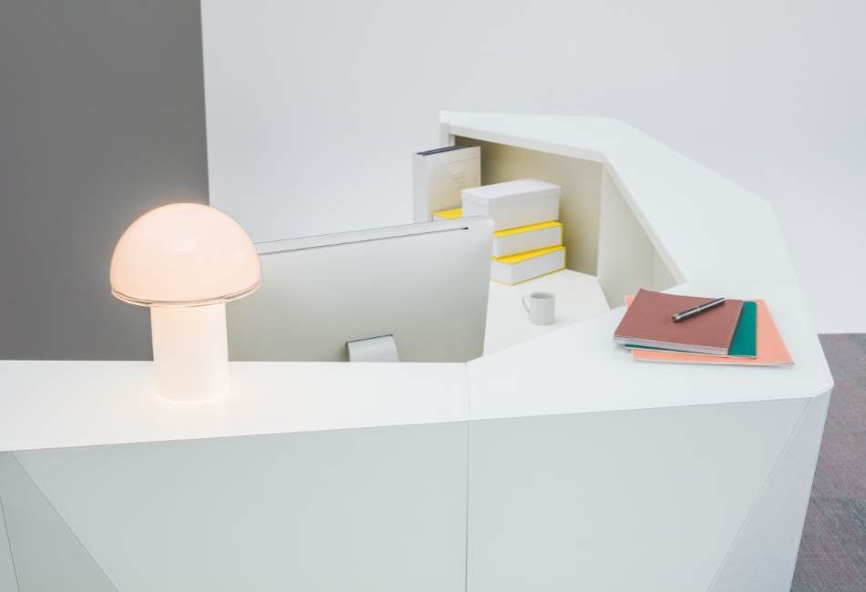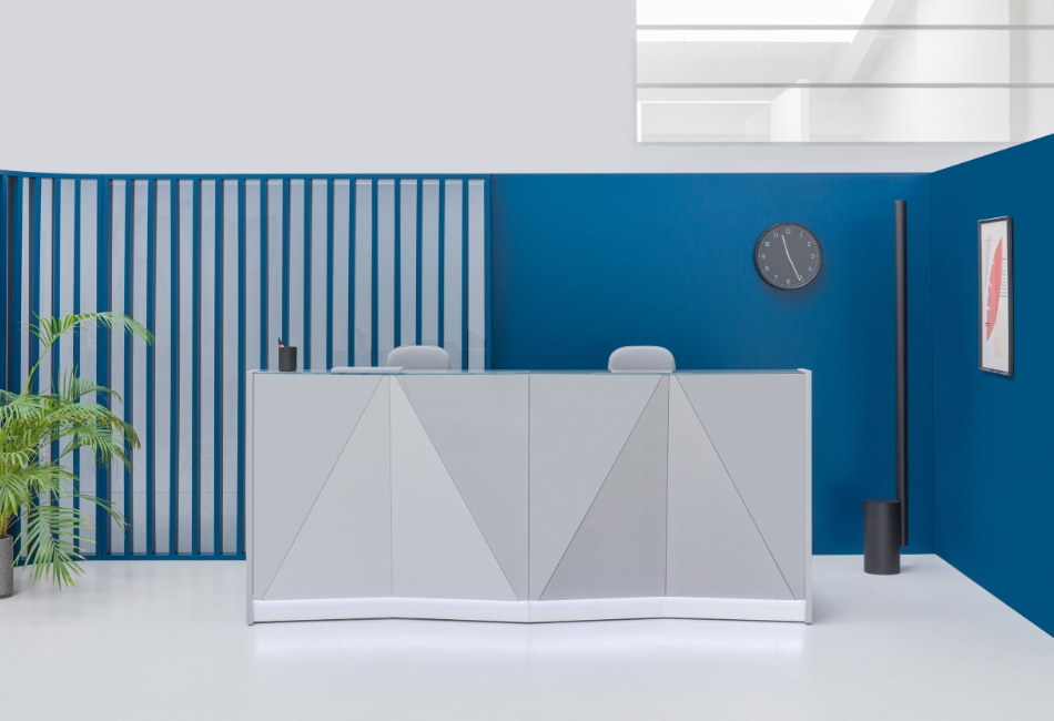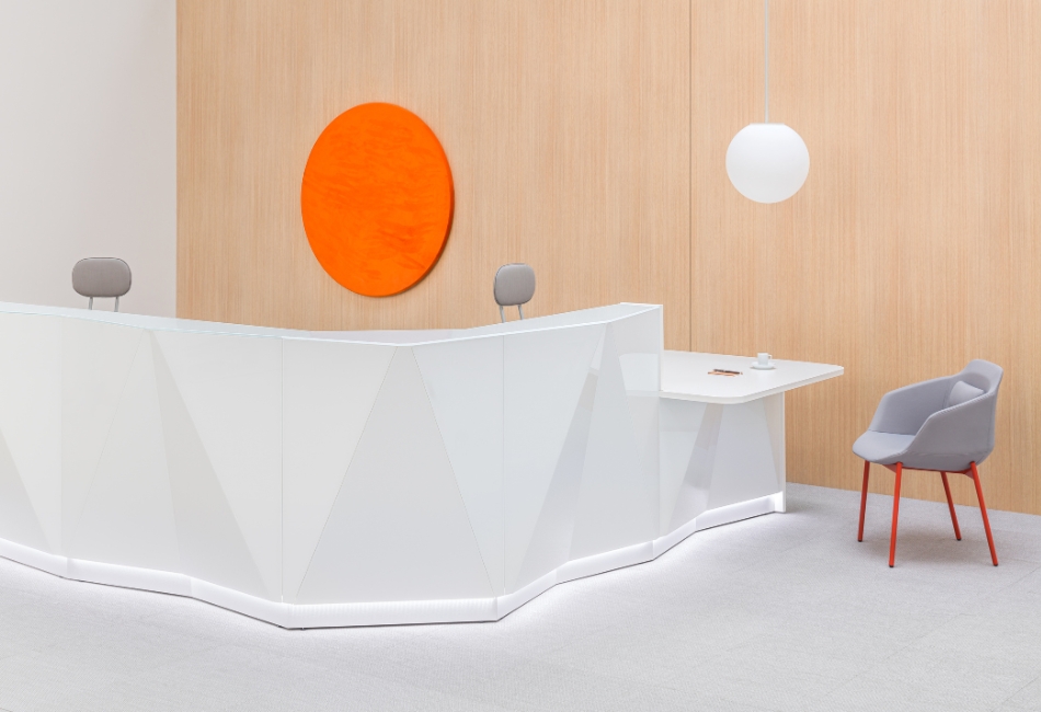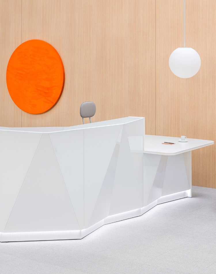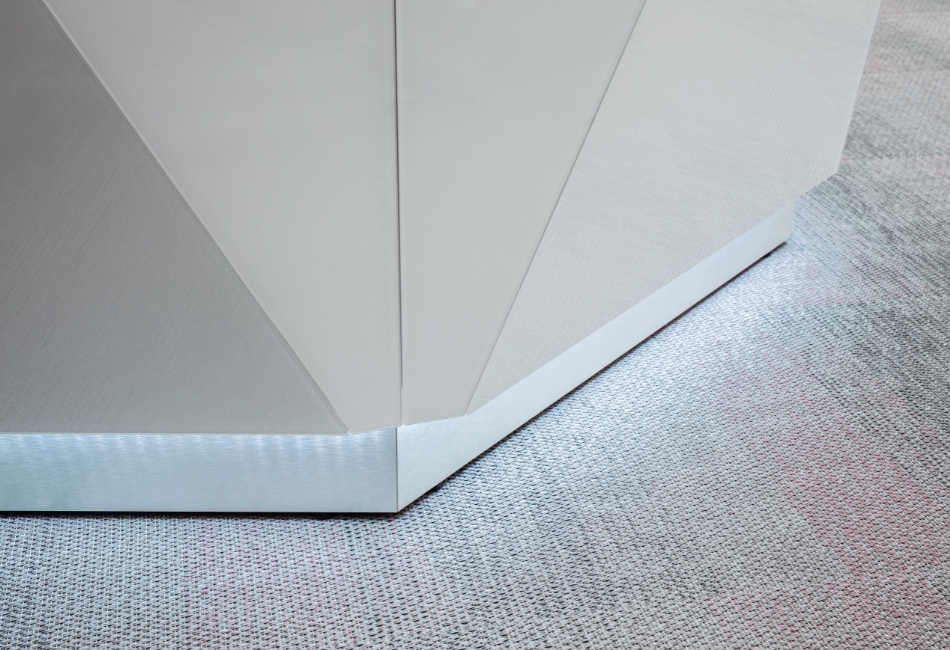 Iluminare cu banda LED – pe toată lungimea biroului de recepție, lumina rece.