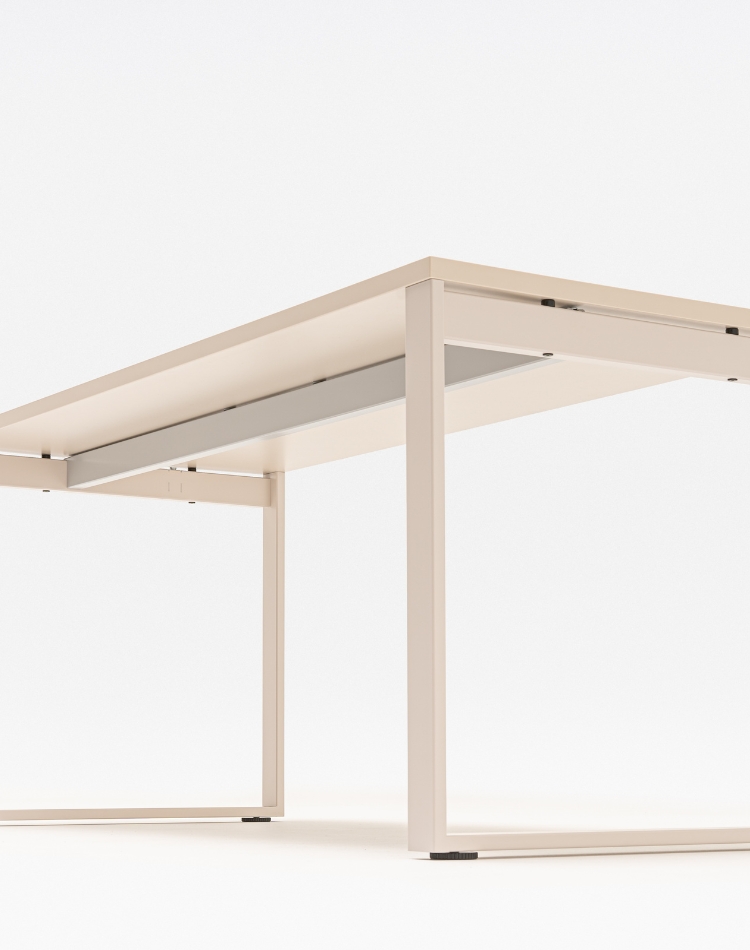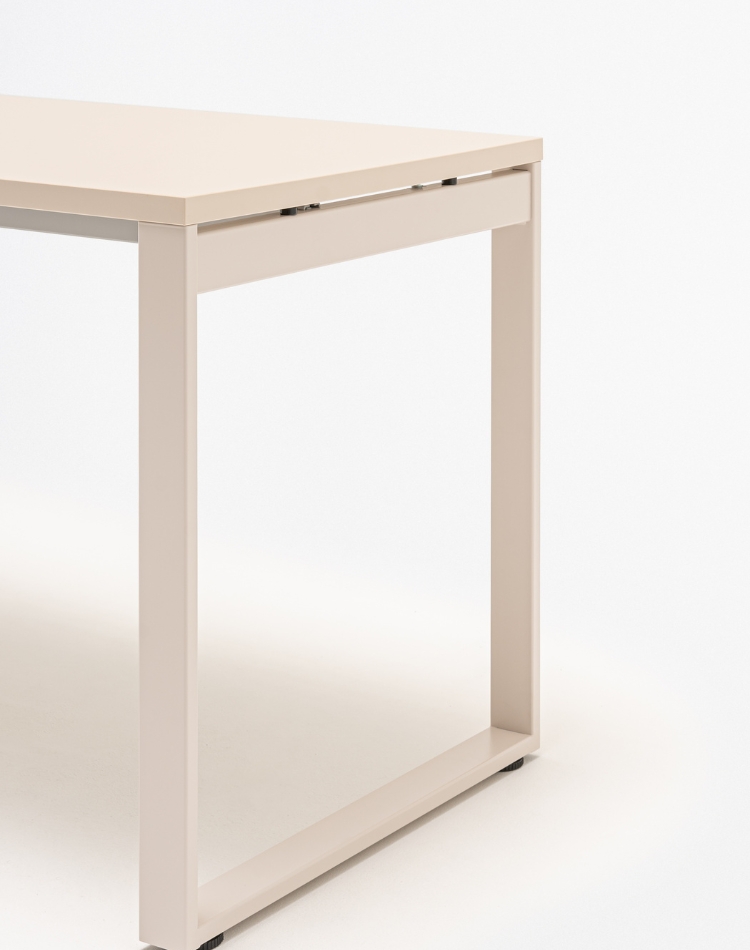 Cadru realizat din profil metalic 20×60 mm, vopsit în câmp electrostatic. Blat din Pal melaminat de 28mm grosime, cant ABS de 2mm grosime.