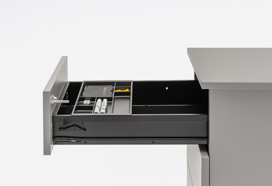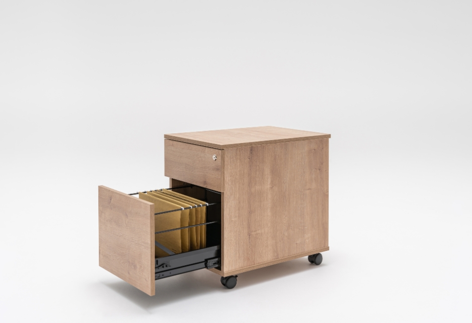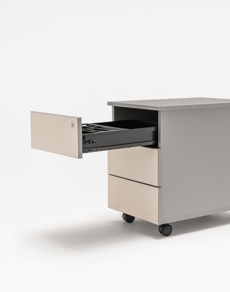 In functie de model este disponibil cu sau fara manere, cu sertar pentru dosare suspendate, extragere partiala 80%, capacitate maxima 30kg, optional pernuta.