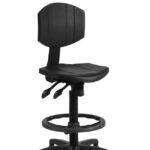 Bază realizată din nailon negru Ø 600 mm, suport pentru picioare din nailon, reglabil cu un buton. Spătar și șezut din poliuretan, cu reglare a înălțimii. Suport pentru picioare din nailon.