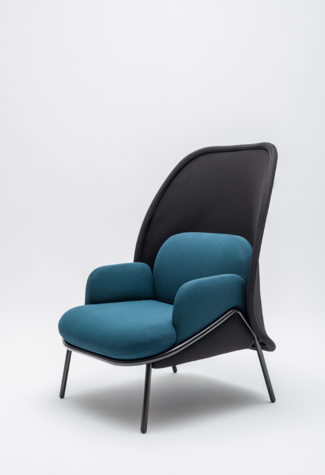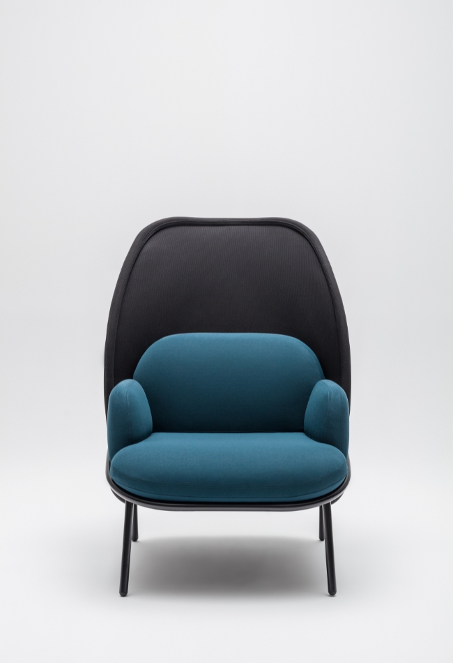 Scaunul adânc și confortabil permite diferite poziții de șezut, cadrul metalic înalt face ușor să stați și să vă ridicați în picioare. Scutul desemnează spațiul și are proprietăți acustice. Proiectat pentru birouri, sufragerie de acasă și spații publice.