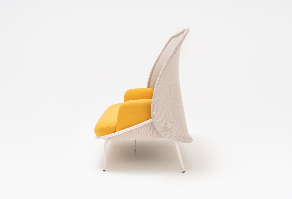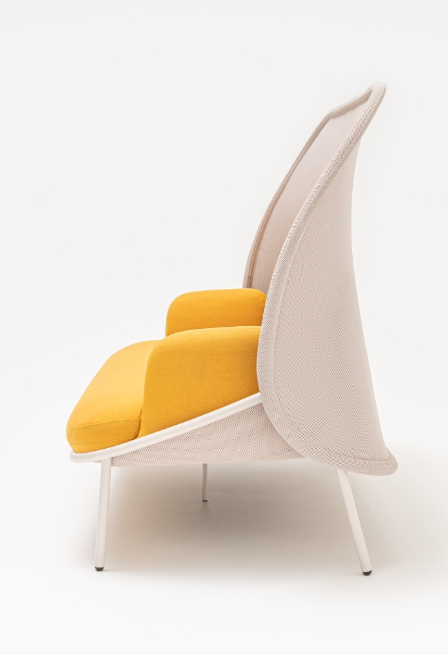 Canapeaua Mesh are o linie modernă, dinamică și design distinctiv. Proiectat pentru birouri, spații publice și sufragerii. Cadrul metalic înalt și șezutul adânc oferă o poziție de șezut ergonomică.
