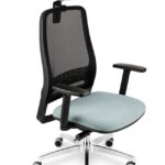 Bază realizată din nailon negru Ø 700 mm. Prevăzut cu mecanism de sincronizare. Înclinarea scaunului 9°, înclinarea spătarului 20° , blocare în 5 poziții . Reglarea înălțimii scaunului. Șezut tapitat, spătar din plasa respirabilă. Cotiera reglabilă pe înălțime din nailon negru. Roțile 65mm.